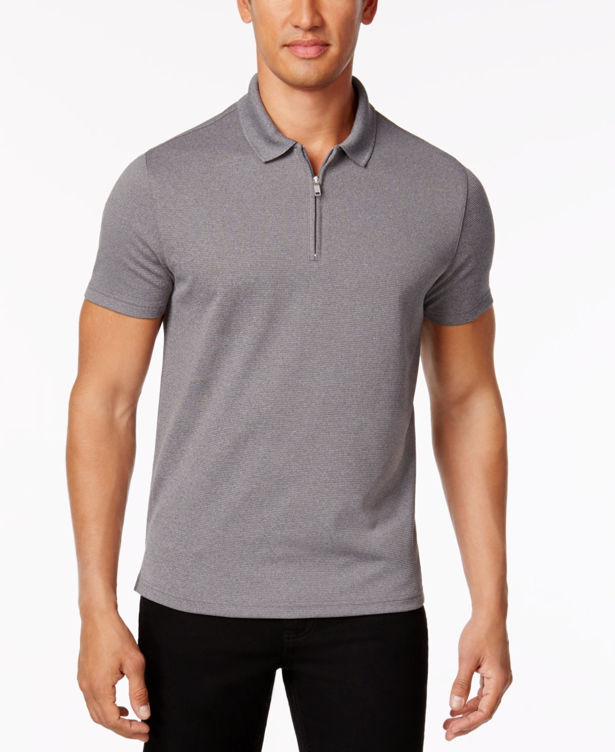 Alfani Men's Ottoman Zip Polo Gray Size Medium