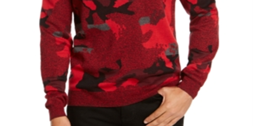 Alfani Men's Printed Long Sleeve Classic Fit Cotton Sweater Red Size XXX-Large