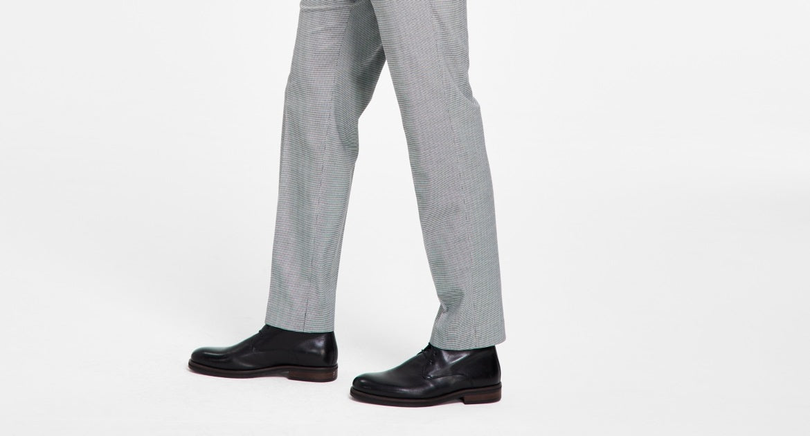Dress to impress with the sophisticated black and white plaid of these modern| Slim Fit| stretch fabric suit separate pants by Alfani