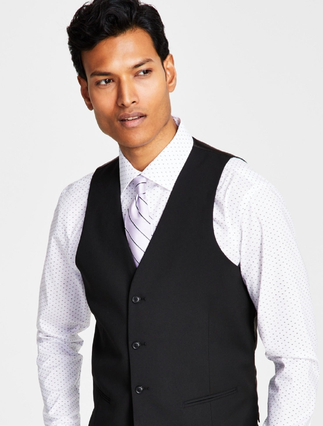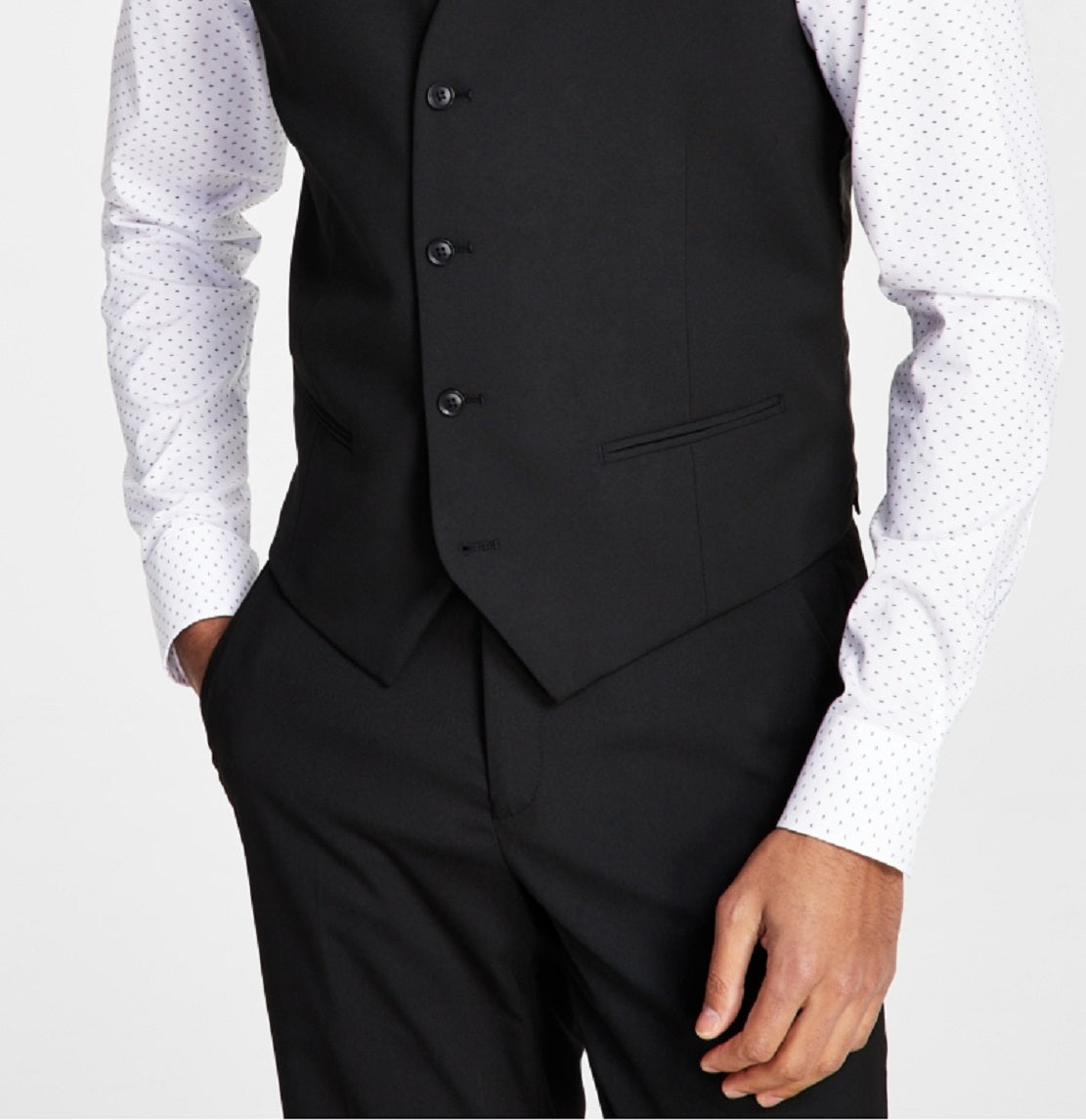 Alfani Men's Slim Fit Stretch Solid Suit Vest Black Size Large