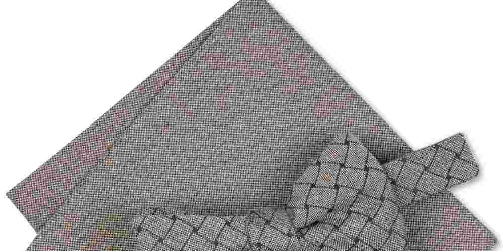 Pre-tied|12W x 12L|All-over graphic detail|Polyester/viscose/silk|Dry clean