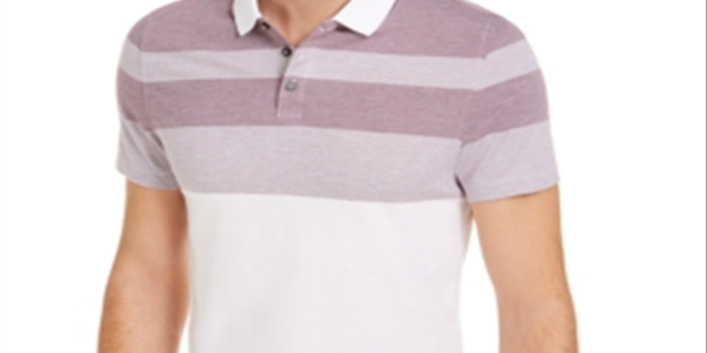 Alfani Men's Striped Collared Polo Shirt Brown Size Medium