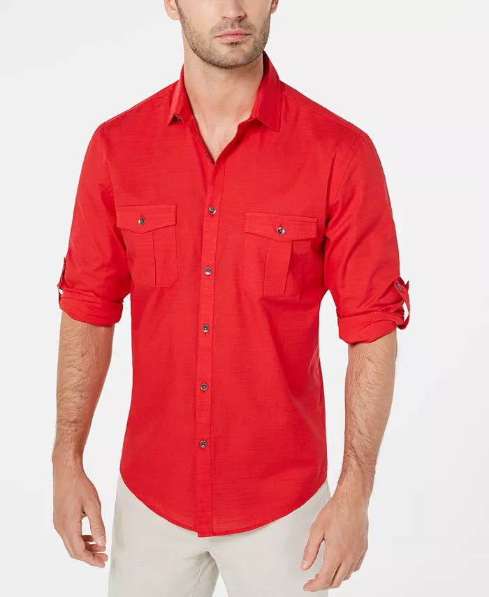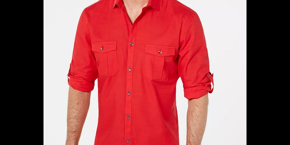 Alfani Men's Warren Long Sleeve Shirt Orange Size Small