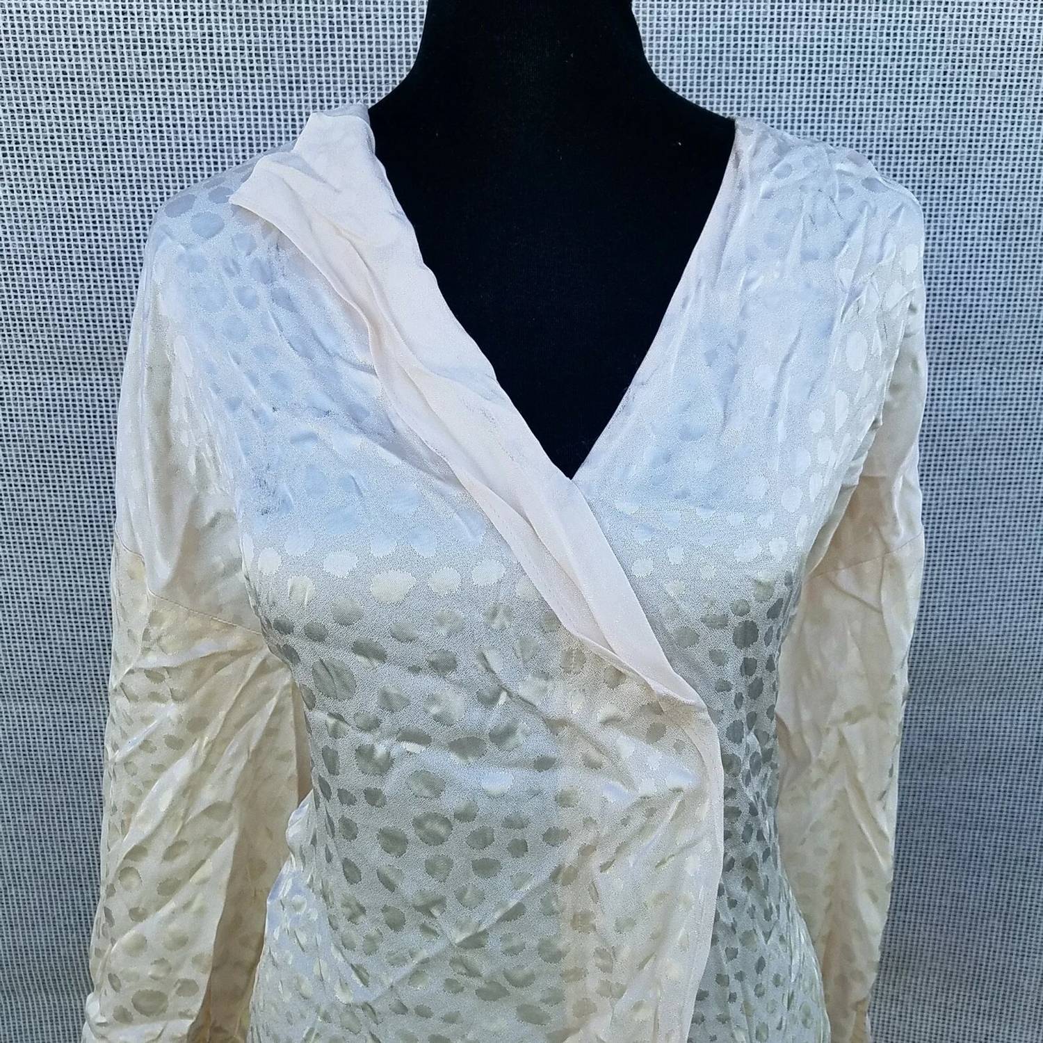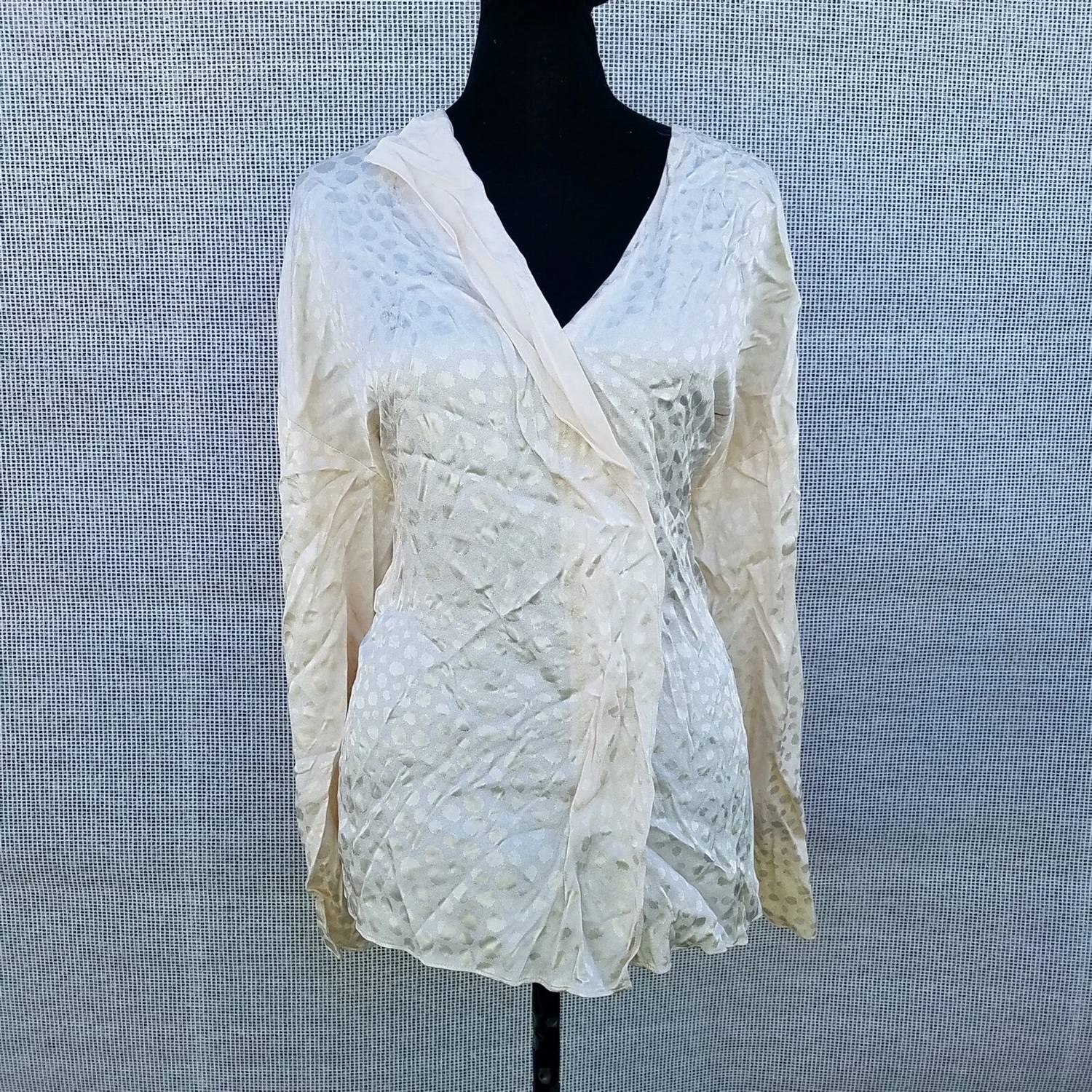 A timeless blouse that will never go out of style. Introducing the Alfani V-neck Long Sleeves Blouse, a sophisticated addition to your workwear collection in a refined ivory shade. Designed with long sleeves and a stylish surplice neckline, this blouse ensures elegance in the workplace. Made from 100% Rayon, the garment offers a comfortable 24" length. Closure: Pull on. Care: Hand wash only.