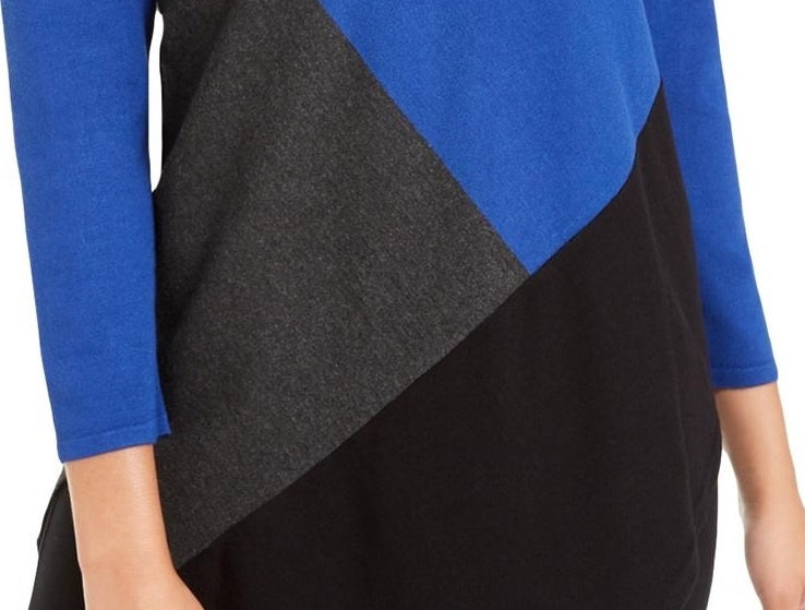 Alfani Women's Asymmetrical Colorblocked Sweater Blue Size X-Large