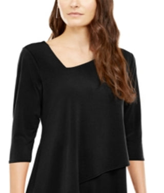 Alfani Women's Asymmetrical Envelope Hem Top Black Size Petite XL