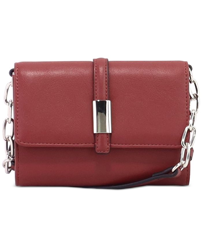 7W x 5H x 1-1/4D; 0.73 lbs. approx. weight|25-1/2L adjustable & removable crossbody strap|Magnetic flap closure|Silver-tone exterior hardware & 1 back zip pocket|1 interior zip pocket & 5 credit card pockets| fits up to an Iphone 13 Pro Max|Bag converts from crossbody to wallet by removing strap