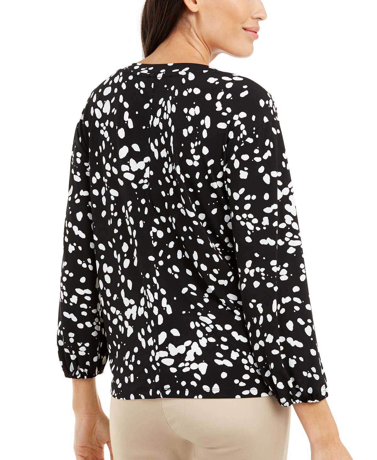 Ask a question about Alfani Women's Blouse Printed Button Shoulder Bateau Black Size XX-Large