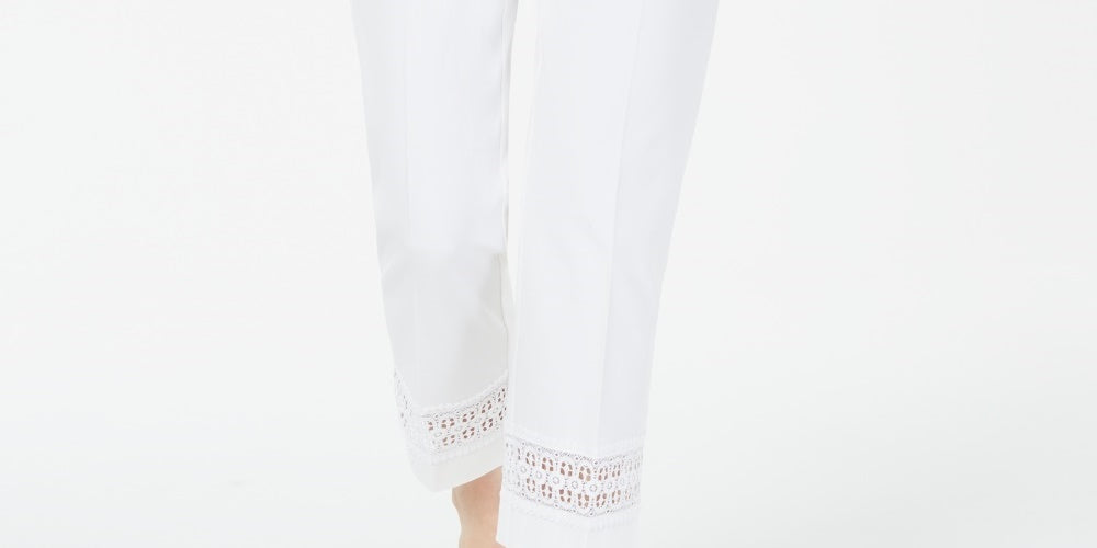 Alfani Women's Cropped Lace Inset Pants White Size 6 Petite