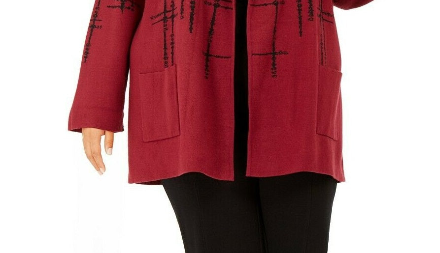 Alfani Women's Double-Knit Sweater Jacket Malbec Speckled Size Small