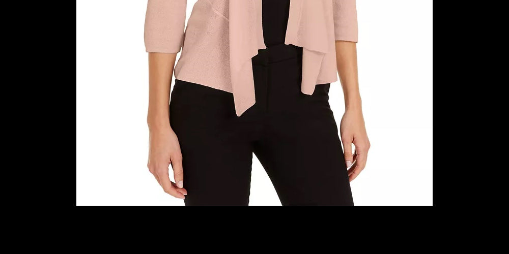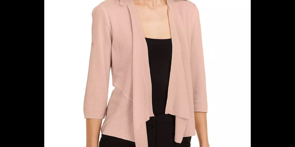 Approx. length; 22|Collarless; open front|Draped placket|Viscose/nylon