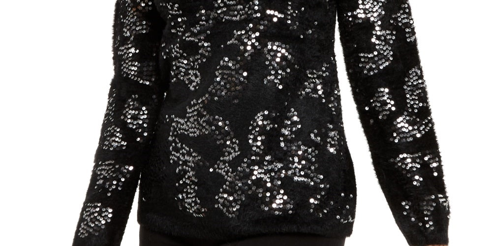 Alfani Women's Embellished Eyelash Sweater Black Size Large