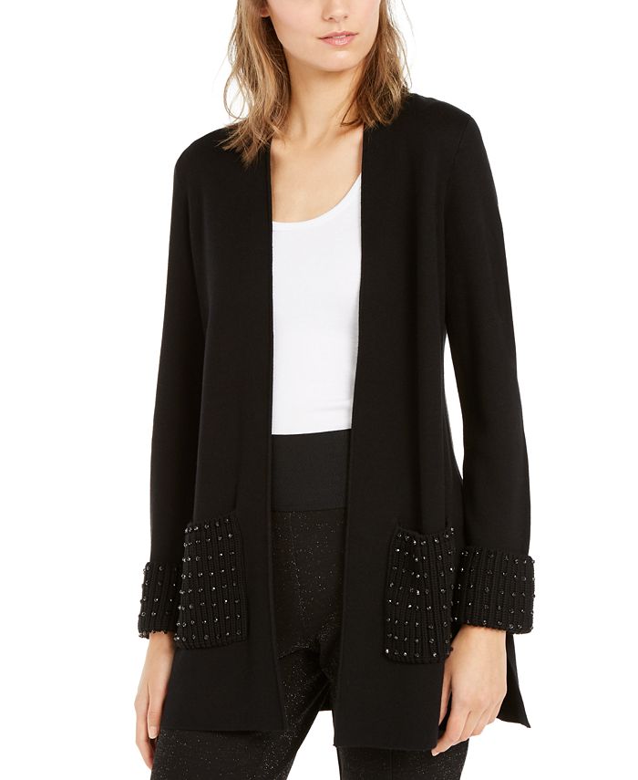 Alfani Women's Embellished Open Front Cardigan Sweater Black Size Small