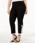 Alfani's plus size pants are designed with an inset control panel at the tummy for a sleek| smooth look. This cropped pair is finished with contrasting lace appliqués at the hem.| High rise; slim fit through hips and thighs; slim leg| Approx. inseam; 26| Hook-and-bar with zipper front closure| Welt pockets at back| Lace trim at hem