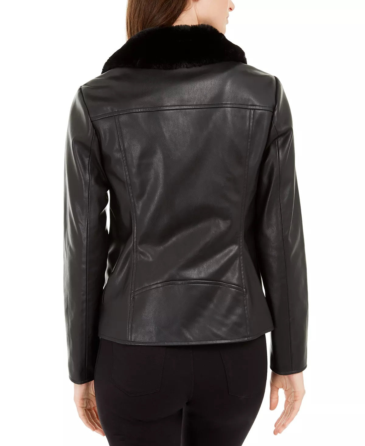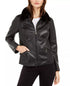 Alfani Women's Faux Leather Faux Fur Collar Jacket Black Size X-Large
