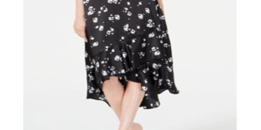 ALFANI Women's Floral Below the Knee Hi-Lo Skirt Black Size 8