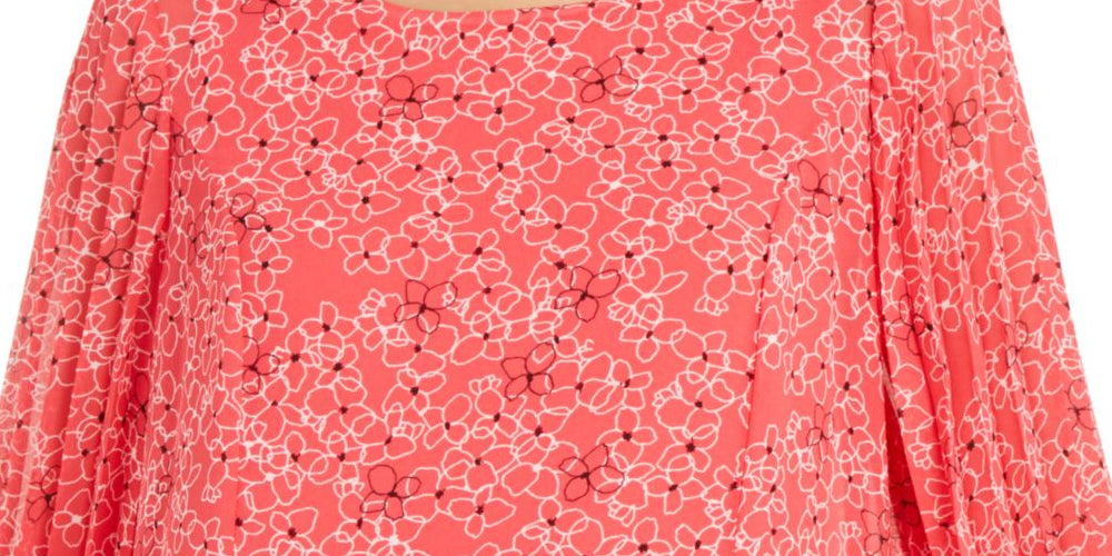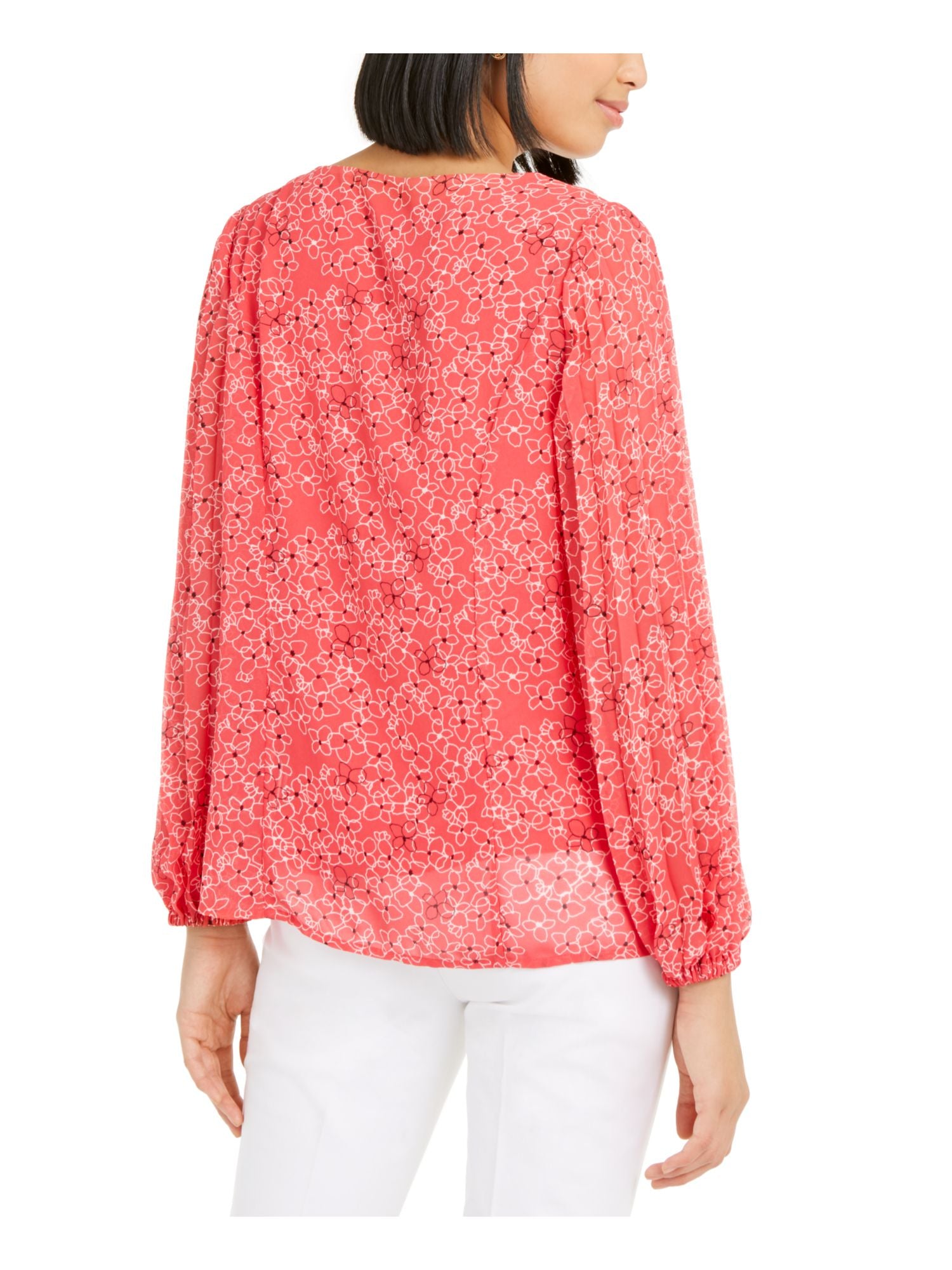 Alfani Women's Floral Print Pleat Sleeve Top Pink Size Petite XL