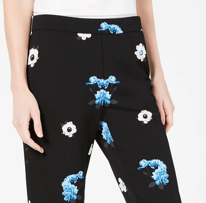Alfani Women's Floral-Print Ruffle-Hem Ankle Pants Black Size 16