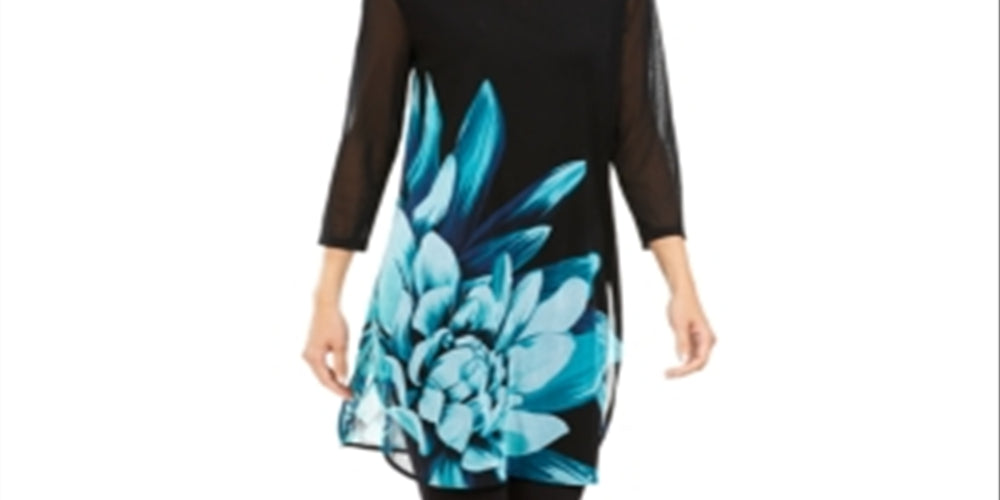 Alfani Women's Floral Print Tunic Black Size Petite Small