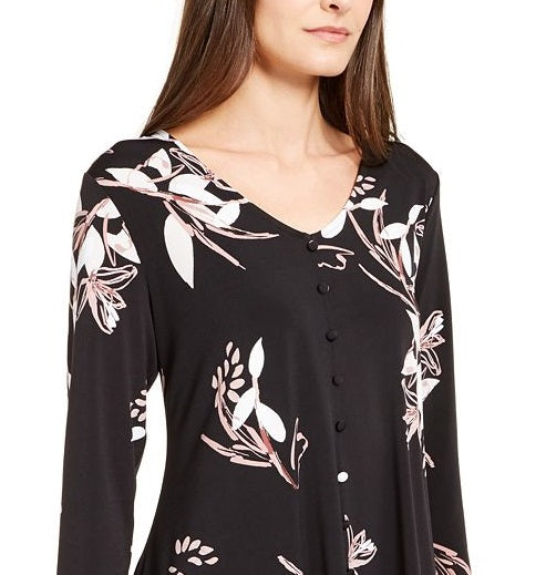 Alfani Women's Floral Print V Neck Blouse Black Size Medium