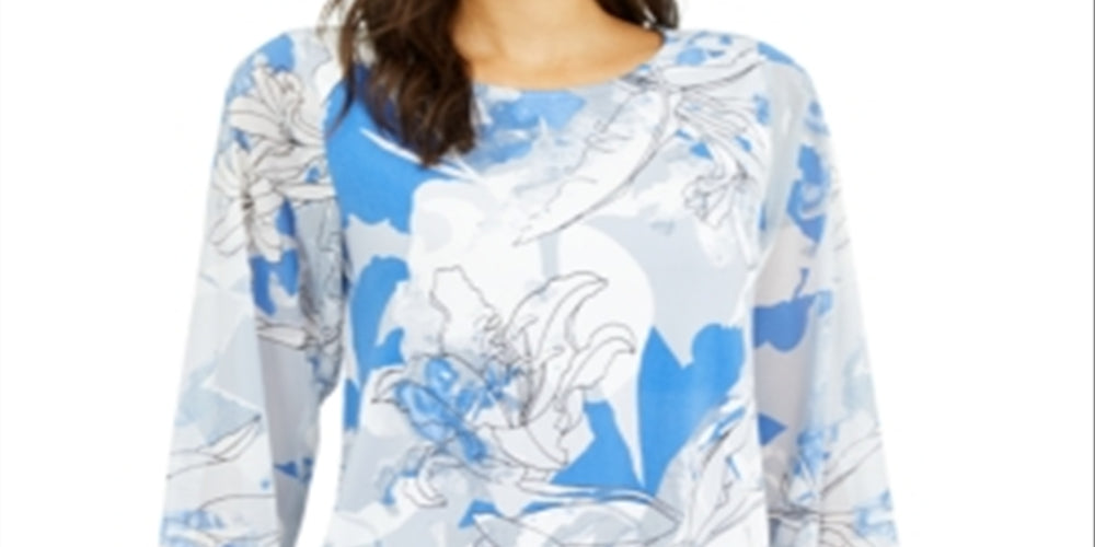 Alfani Women's Floral Scoop Neck Top Blue Size Small