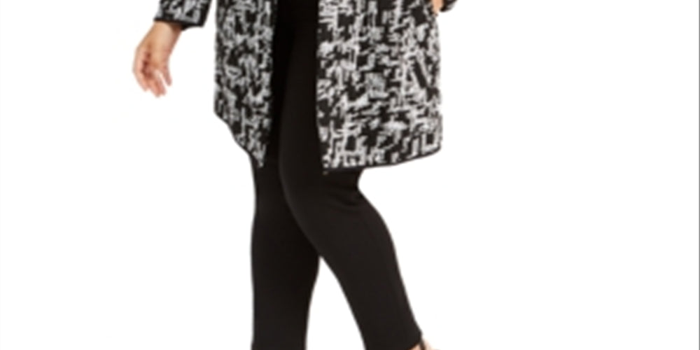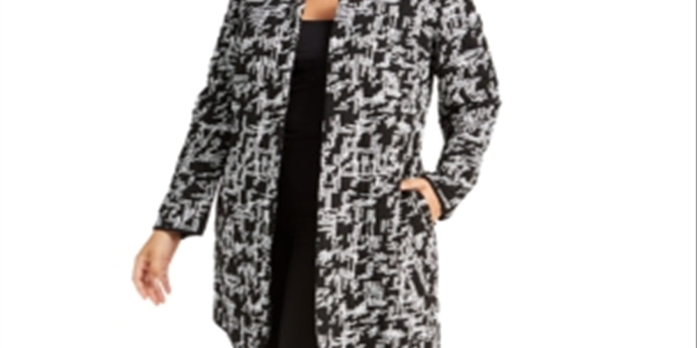 Alfani Women's Jacquard Open Front Jacket Black Size 0X