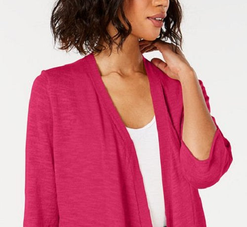 Brighten your daytime looks with Alfani's petite open-front cardigan.| Draped neckline| Open front; no closures| Three-quarter-length sleeves| Handkerchief hem| Unlined | Hits at hip