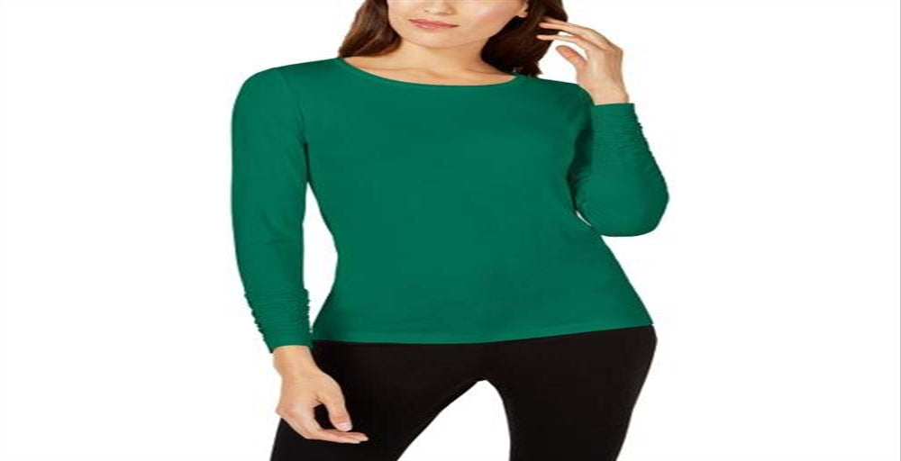 Alfani Women's Long Sleeve Jewel Neck Top Green Size X-Large