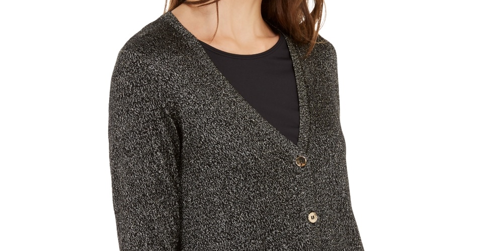 Alfani Women's Metallic Shirttail Cardigan Sweater Black Size Petite Small-Medium