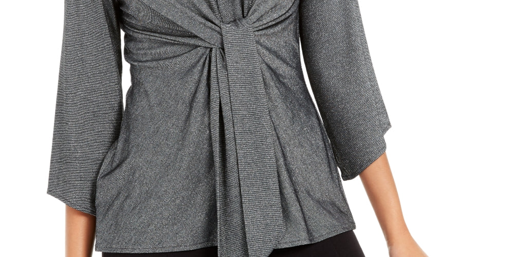 Alfani Women's Metallic Tie Front Top Gray Size Large