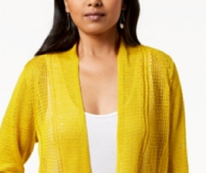 Alfani Women's Mixed Stitch Linen Blend Open Front Cardigan Yellow Size Petite Small