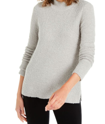 Alfani Women's Mock-Neck Boucle Sweater Gray Size Large