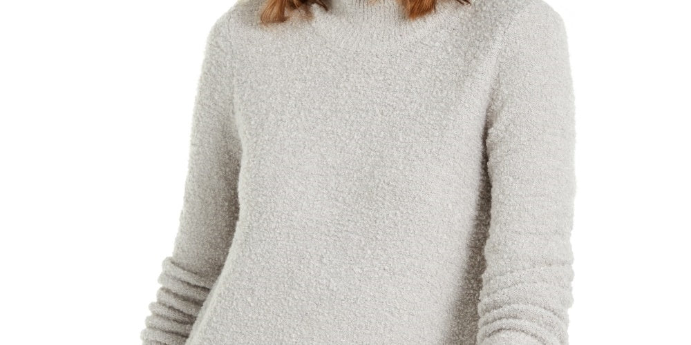Ask a question about Alfani Women's Mock-Neck Boucle Sweater Gray Size Small