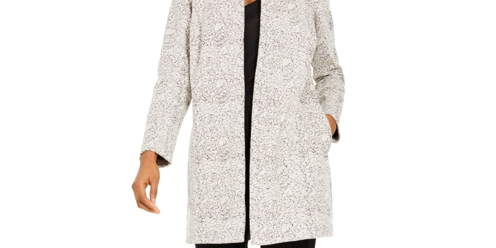 Ask a question about Alfani Women's Open Front Jacquard Jacket Gray Size Petite Large