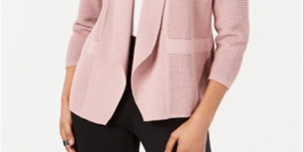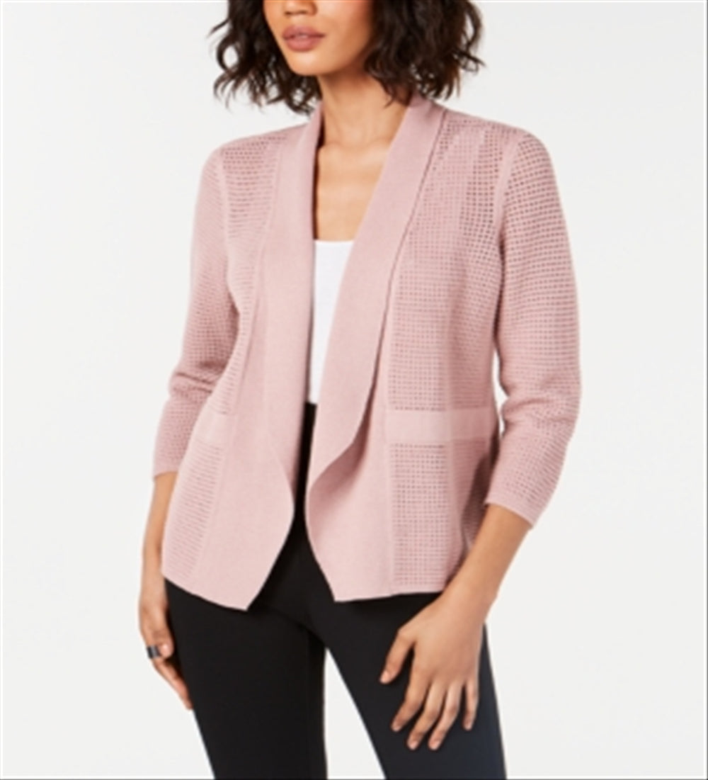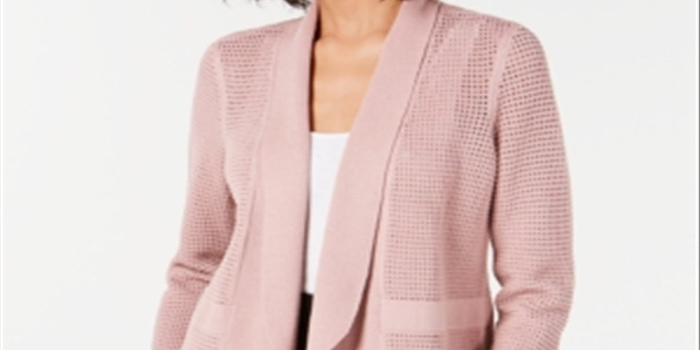 Alfani Women's Open-Knit Linen-Blend Cardigan Pink Size M