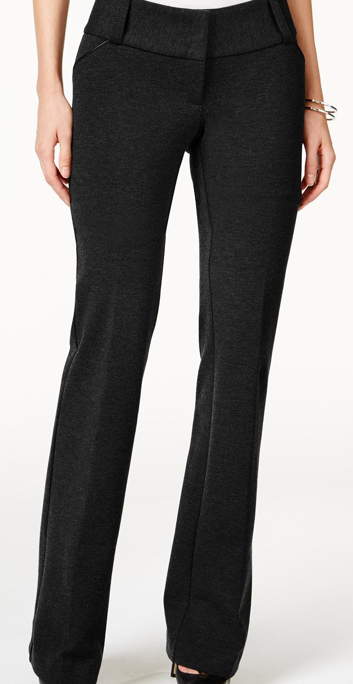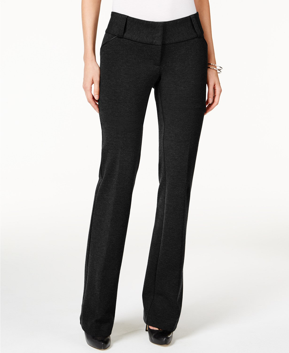 Low rise: waistband sits at hips | Wide leg | Front zipper and hook-and-eye closure