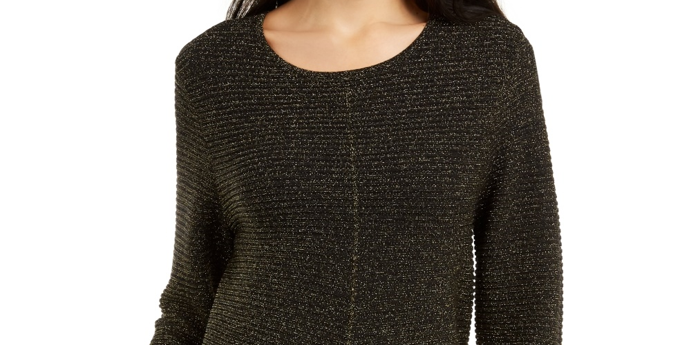 Alfani Women's Petite Metallic Swing Sweater Black PS
