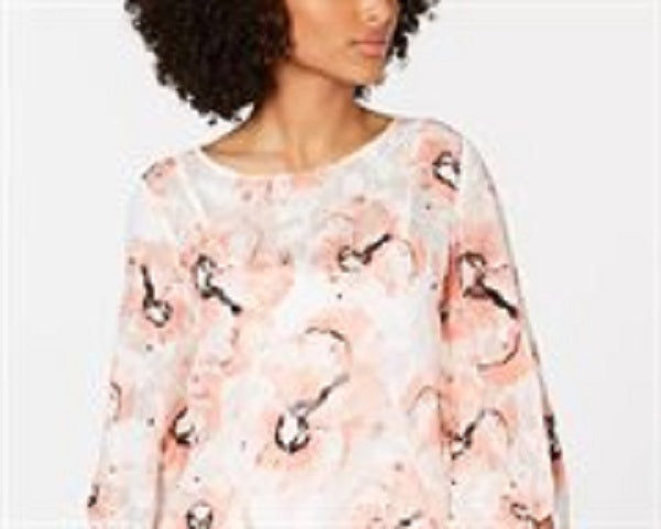 Alfani Women's Petite Printed Bubble-Hem Top Orange Size Medium