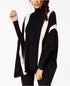 Alfani Women's Petite Striped Poncho Sweater Black Size Large