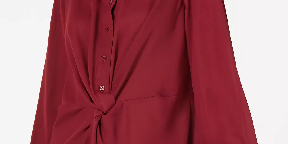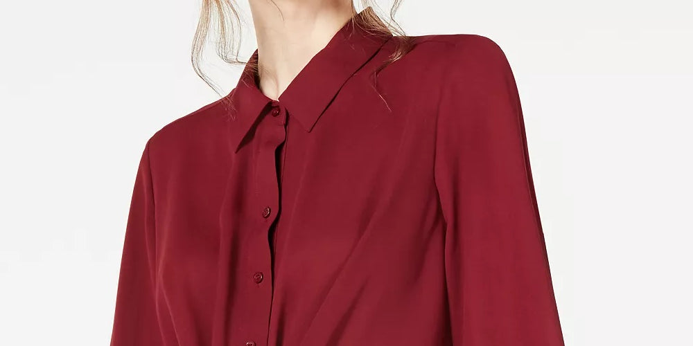 Alfani Women's Petite Twist-Front Button-Up Top Wine Size Petite X-Large