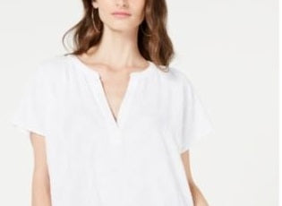 Ask a question about Alfani Women's Petite V-Neck Textured Top -White Size PXL