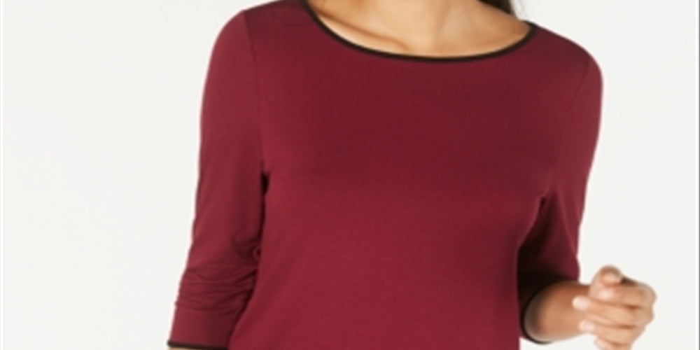 Alfani Women's Piped 3/4-Sleeve T-Shirt (M| Malbec)| Machine wash| 3/4 Sleeve| Style; Blouse| Size Type; Regular