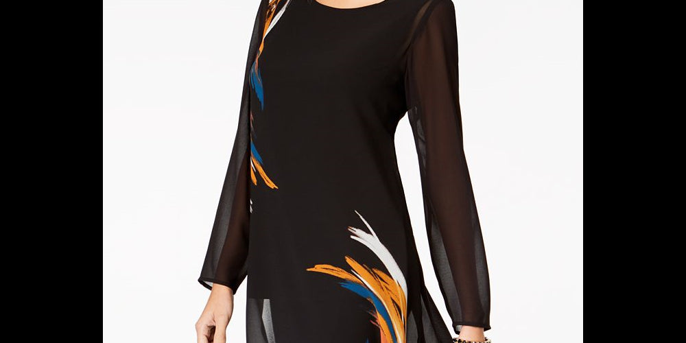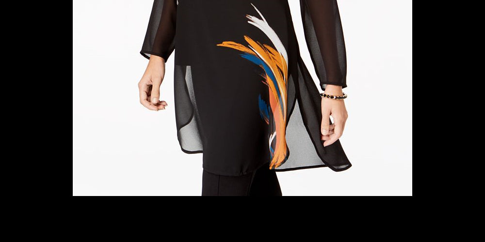 Alfani Women's Placed Print Chiffon Tunic Black Size Petite XL