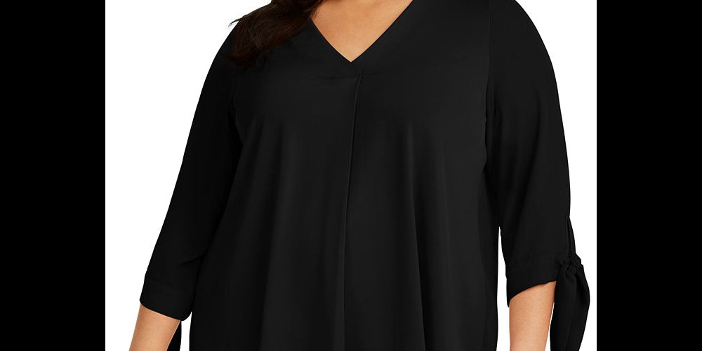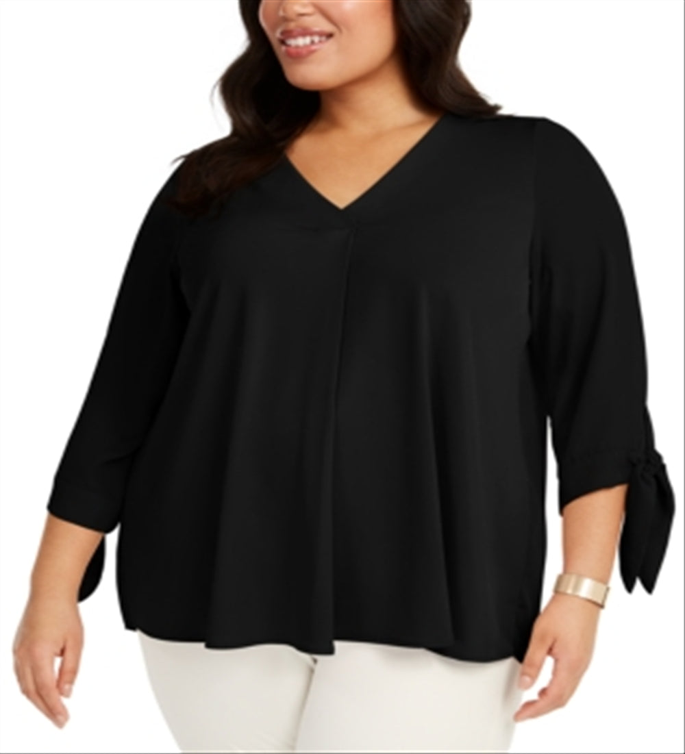 Alfani Women's Pleated Back Tie Sleeve Top -Black Size 1X