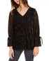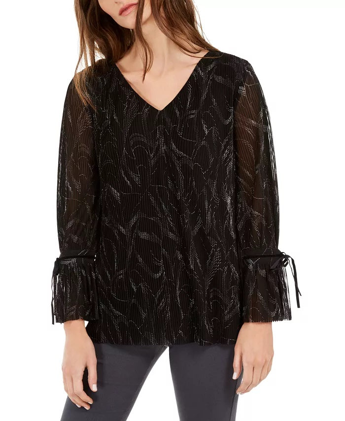 Alfani Women's Pleated Tie Cuff Top Black Size Medium