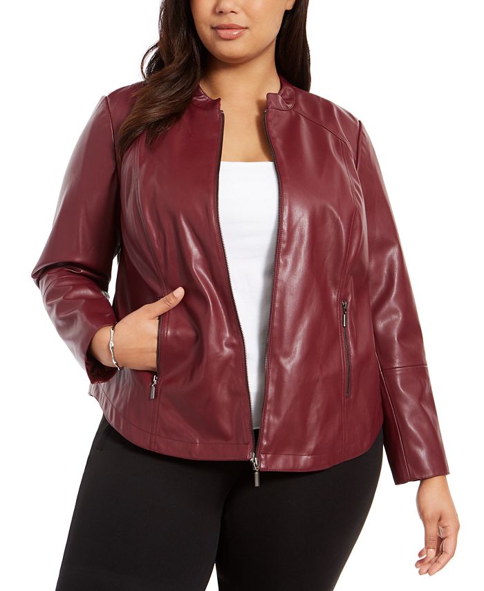 Alfani Women's Plus Faux Leather Jacket Wine Size 0X