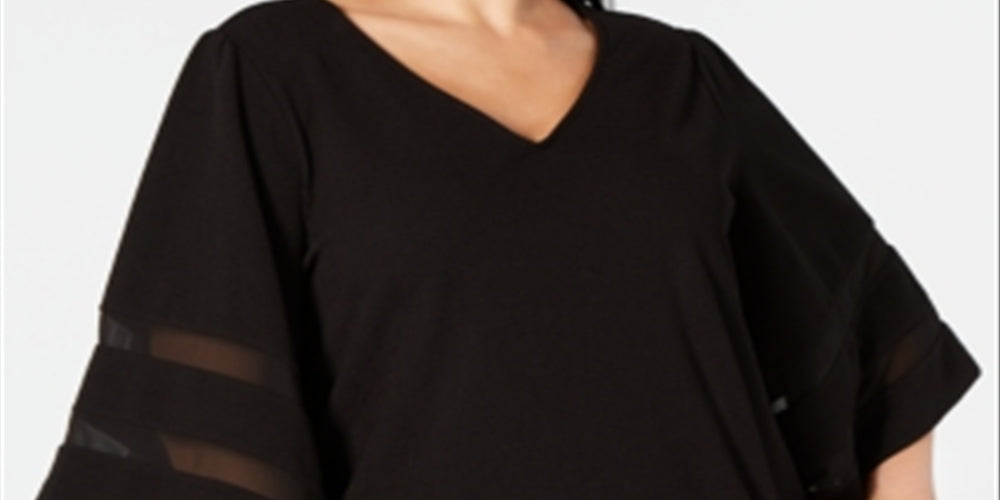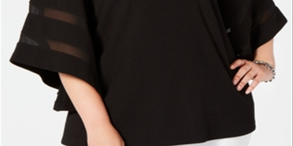 Alfani Women's Plus Mesh Inset Top Black Size 1X