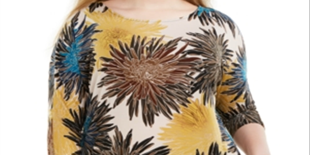 Alfani Women's Plus Printed Dolman Sleeve Top Yellow Size 2X
