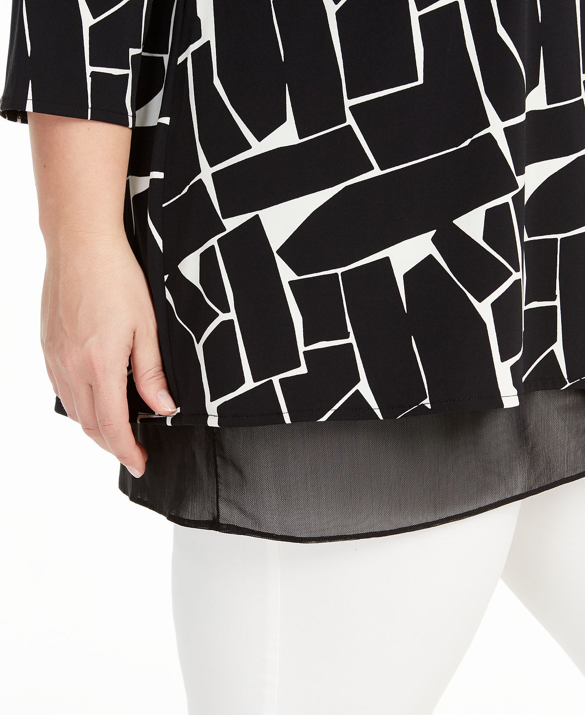Alfani Women's Plus Printed Mesh Underlay Top Black Size 1X