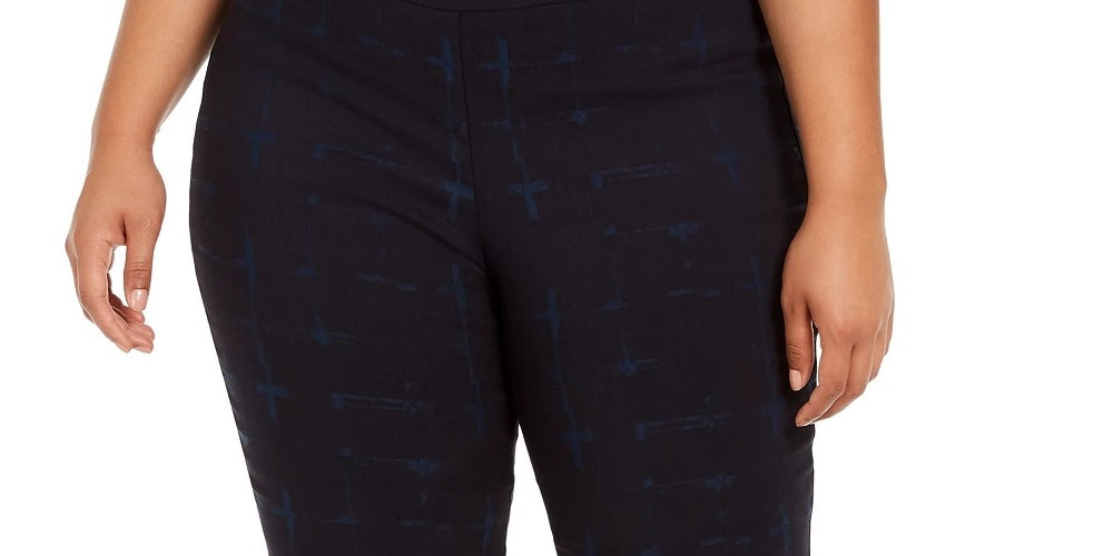 Alfani Women's Plus Pull On Plaid Pants Navy Size 20W